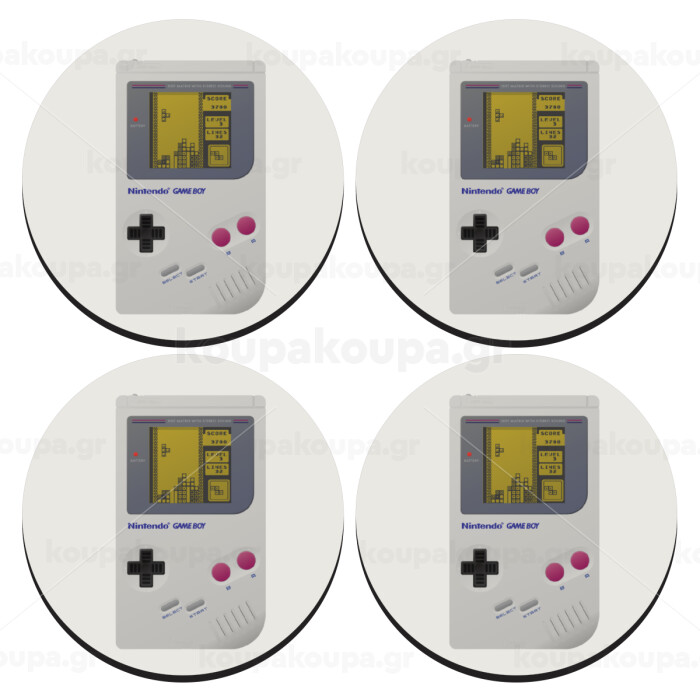 Gameboy, SET of 4 round wooden coasters (9cm)