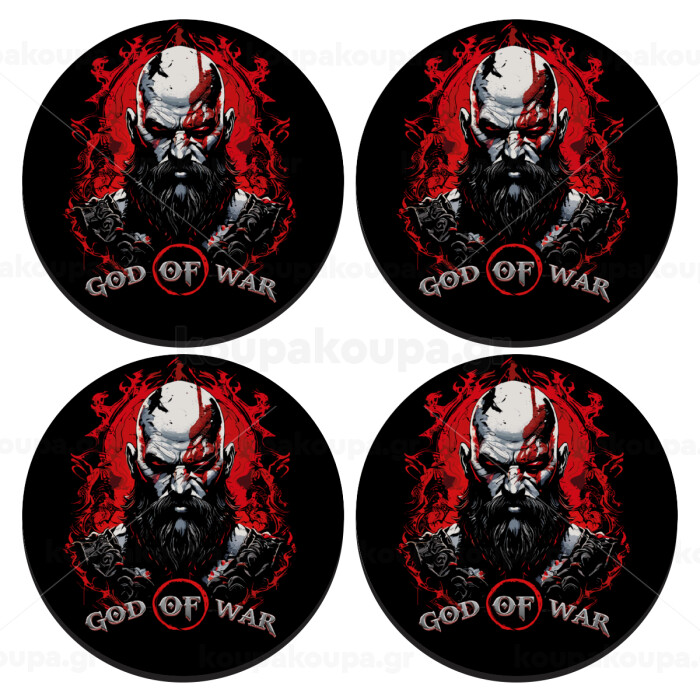 God of war, SET of 4 round wooden coasters (9cm)