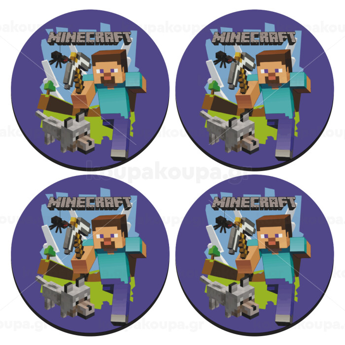 Minecraft Alex, SET of 4 round wooden coasters (9cm)