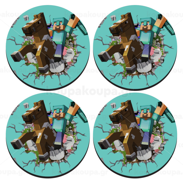 Minecraft brick, SET of 4 round wooden coasters (9cm)