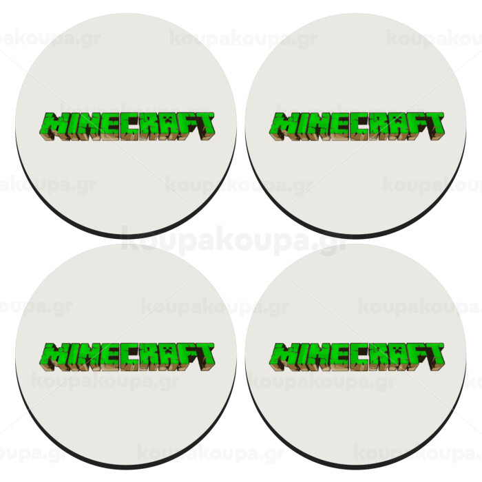 Minecraft logo green, SET of 4 round wooden coasters (9cm)