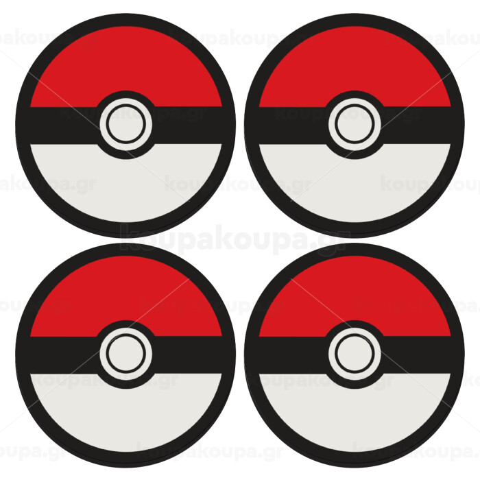 Pokemon ball, SET of 4 round wooden coasters (9cm)