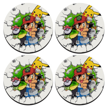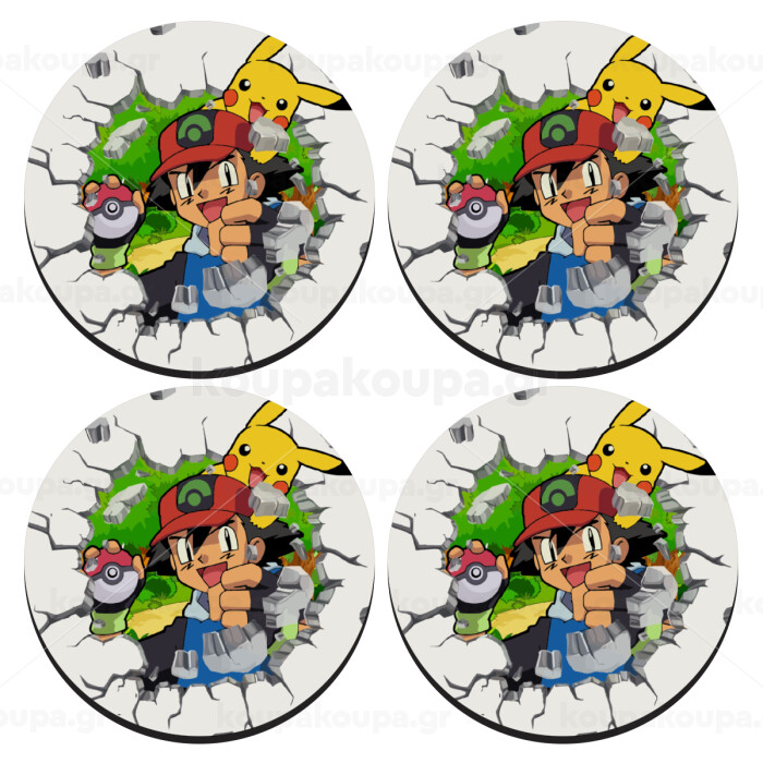 Pokemon brick, SET of 4 round wooden coasters (9cm)