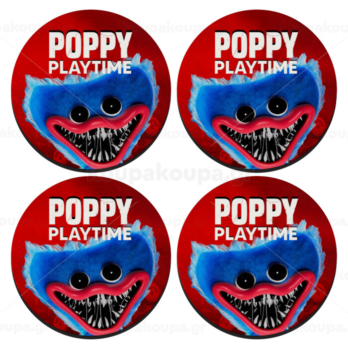 Poppy Playtime Huggy wuggy, SET of 4 round wooden coasters (9cm)