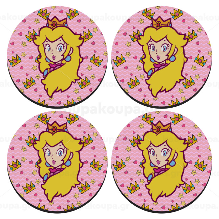 Princess Peach, SET of 4 round wooden coasters (9cm)