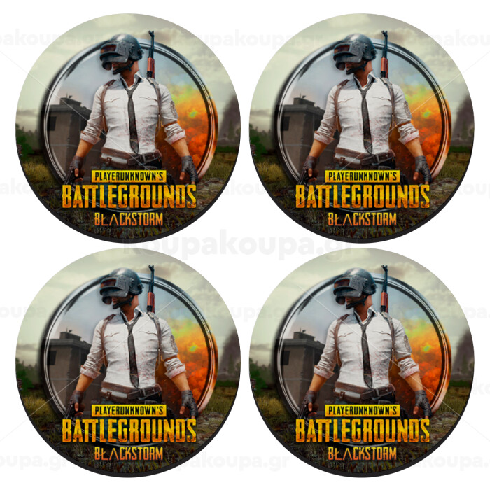 PUBG battleground royale, SET of 4 round wooden coasters (9cm)