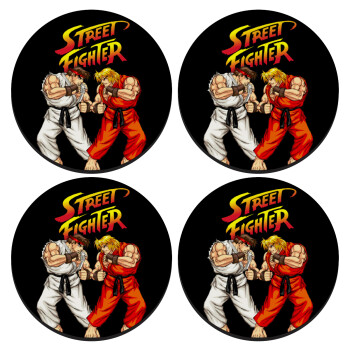 Street fighter, SET of 4 round wooden coasters (9cm)