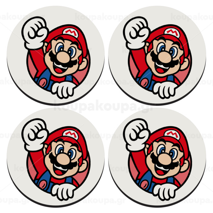 Super mario win, SET of 4 round wooden coasters (9cm)