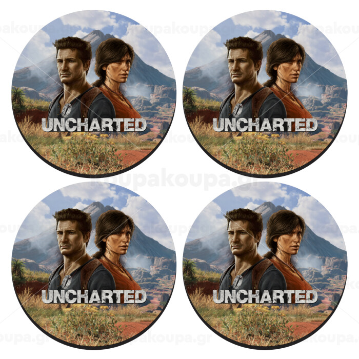 Uncharted, SET of 4 round wooden coasters (9cm)