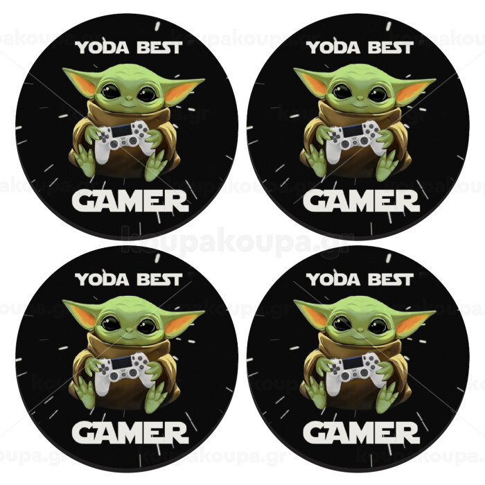 Yoda Best Gamer, SET of 4 round wooden coasters (9cm)