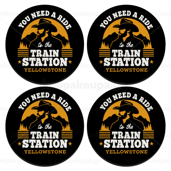 You need a ride to the train station, SET of 4 round wooden coasters (9cm)