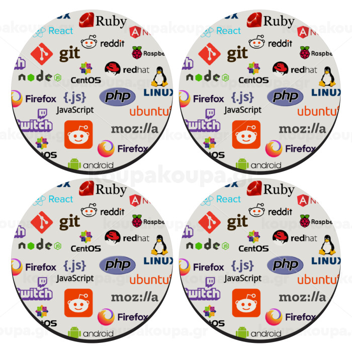 Tech logos, SET of 4 round wooden coasters (9cm)