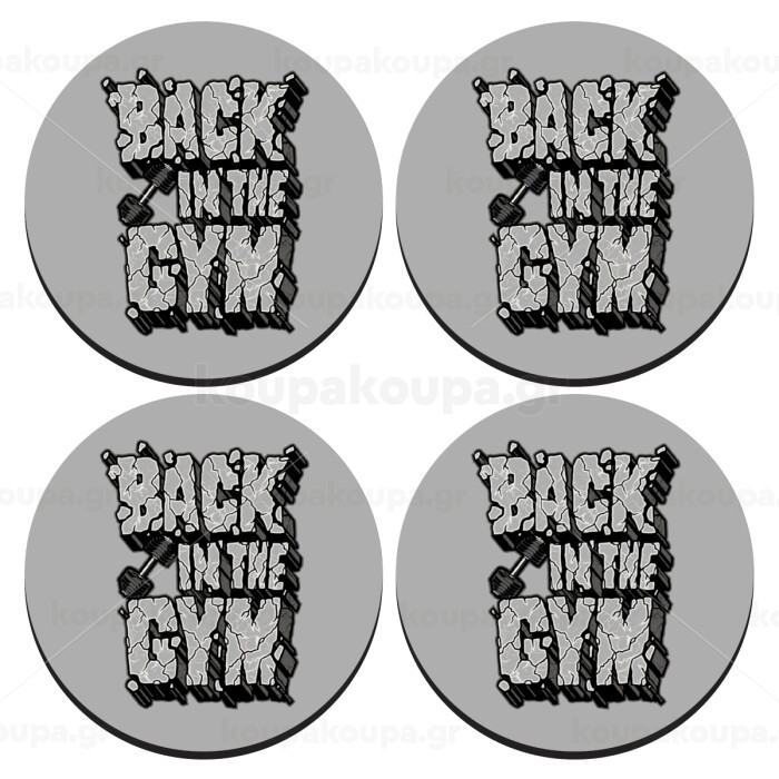 Back in the GYM, SET of 4 round wooden coasters (9cm)