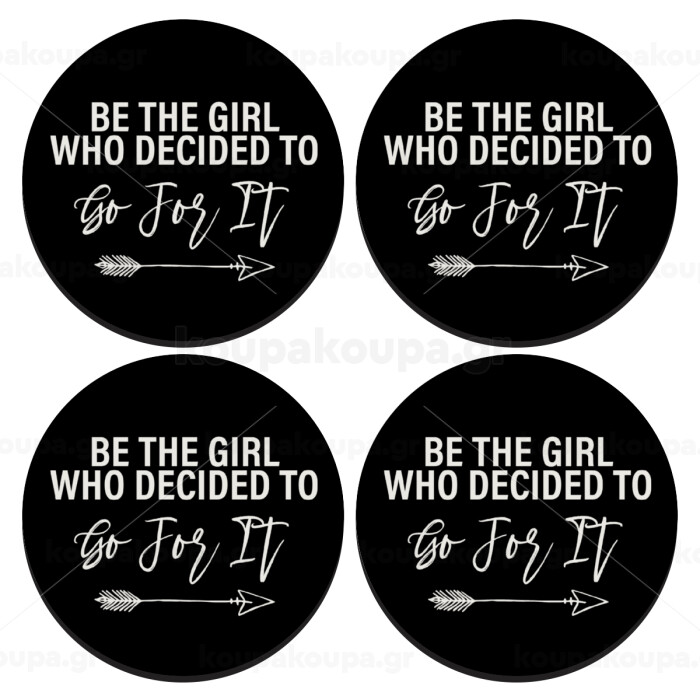 Be the girl who decided to, SET of 4 round wooden coasters (9cm)