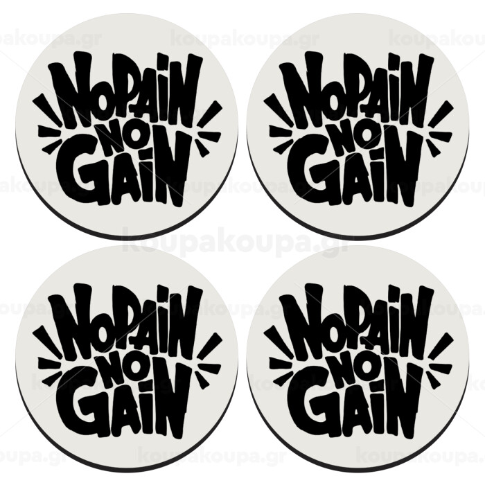 No pain no gain, SET of 4 round wooden coasters (9cm)