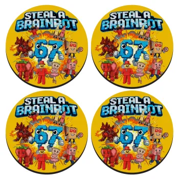 Steal a Brainrot 67 Roblox Style, SET of 4 round wooden coasters (9cm)