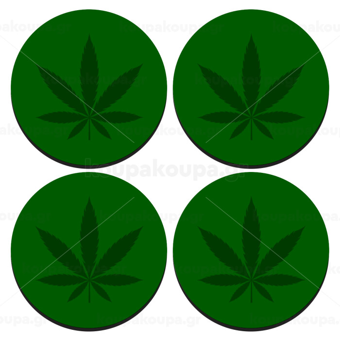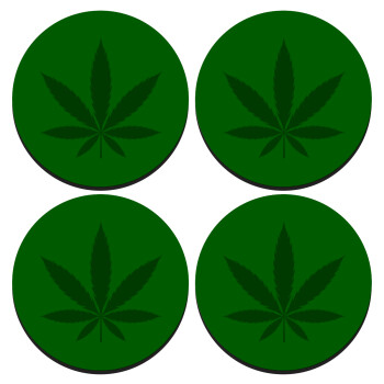 Weed, SET of 4 round wooden coasters (9cm)