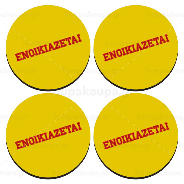 ΕΝΟΙΚΙΑΖΕΤΑΙ, SET of 4 round wooden coasters (9cm)