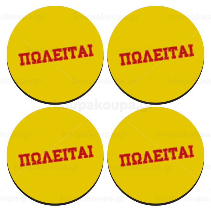 ΠΩΛΕΙΤΑΙ, SET of 4 round wooden coasters (9cm)