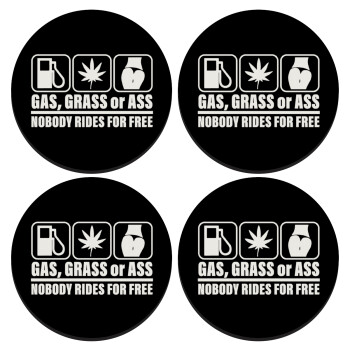Gas, Grass or Ass, SET of 4 round wooden coasters (9cm)