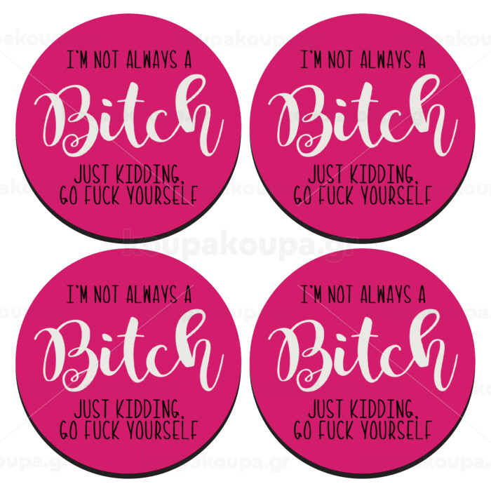 I'm not always a bitch, just kidding go f..k yourself , SET of 4 round wooden coasters (9cm)