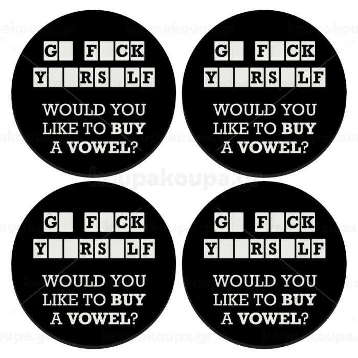 Wheel of fortune, go f..k yourself, SET of 4 round wooden coasters (9cm)
