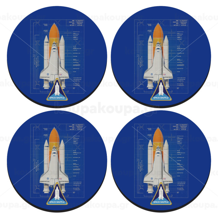 Nasa Space Shuttle, SET of 4 round wooden coasters (9cm)