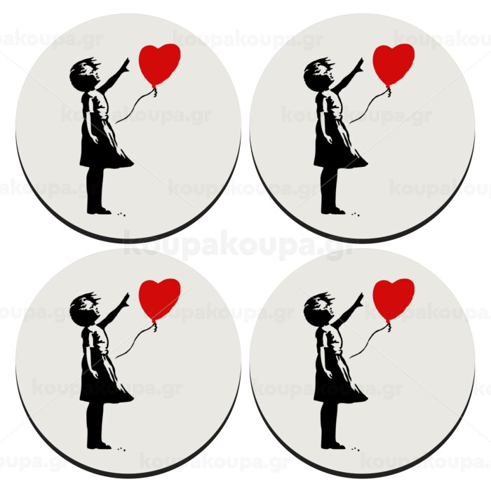 Banksy (Hope), SET of 4 round wooden coasters (9cm)