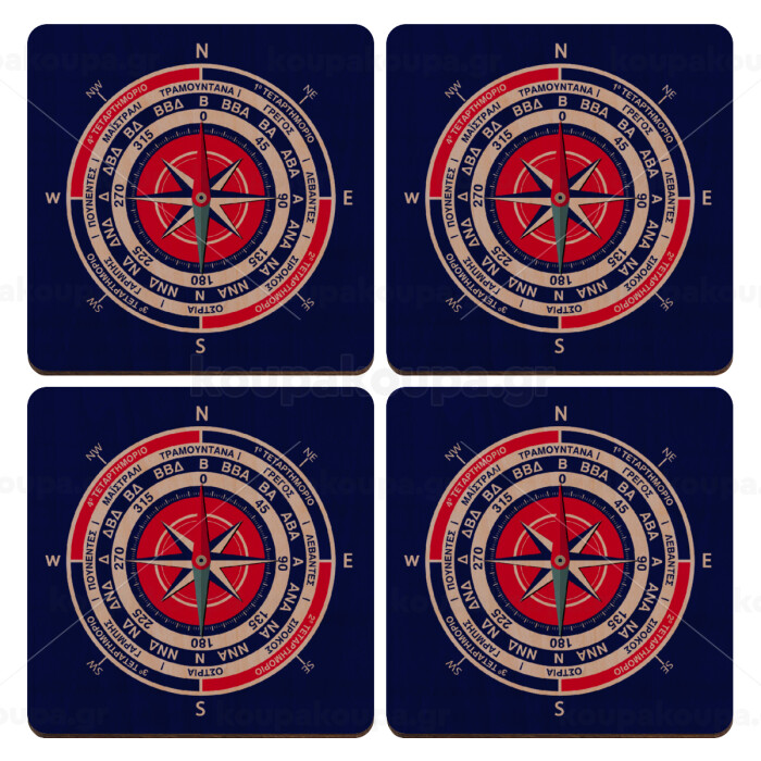 Wind compass, ΣΕΤ x4 Σουβέρ ξύλινα τετράγωνα plywood (9cm)