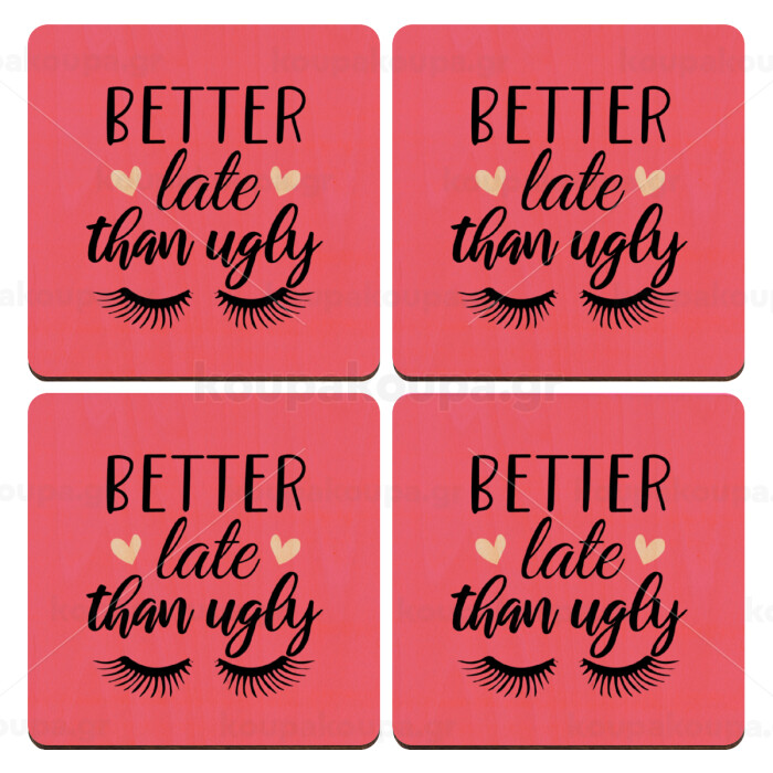 Better Late than ugly hearts, ΣΕΤ x4 Σουβέρ ξύλινα τετράγωνα plywood (9cm)