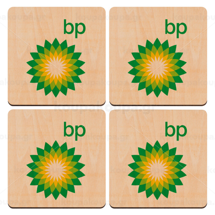 Πρατήριο καυσίμων BP, ΣΕΤ x4 Σουβέρ ξύλινα τετράγωνα plywood (9cm)