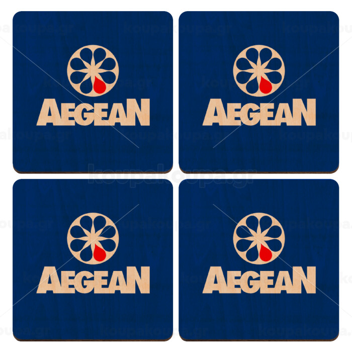 Πρατήριο καυσίμων AEGEAN, ΣΕΤ x4 Σουβέρ ξύλινα τετράγωνα plywood (9cm)