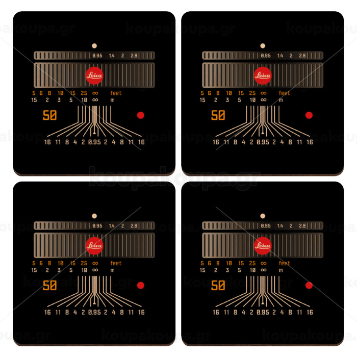 Leica Lens, ΣΕΤ x4 Σουβέρ ξύλινα τετράγωνα plywood (9cm)