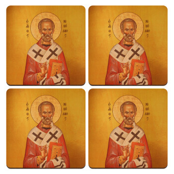 Saint Nicholas orthodox , ΣΕΤ x4 Σουβέρ ξύλινα τετράγωνα plywood (9cm)