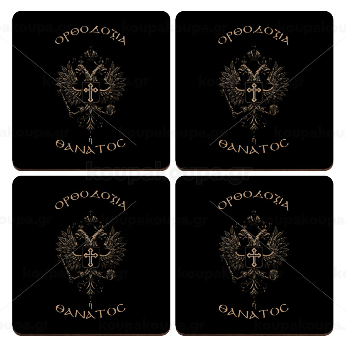 Ορθοδοξία ή Θάνατος, ΣΕΤ x4 Σουβέρ ξύλινα τετράγωνα plywood (9cm)