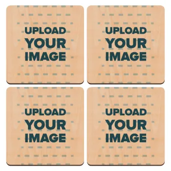 Upload your logo, ΣΕΤ x4 Σουβέρ ξύλινα τετράγωνα plywood (9cm)