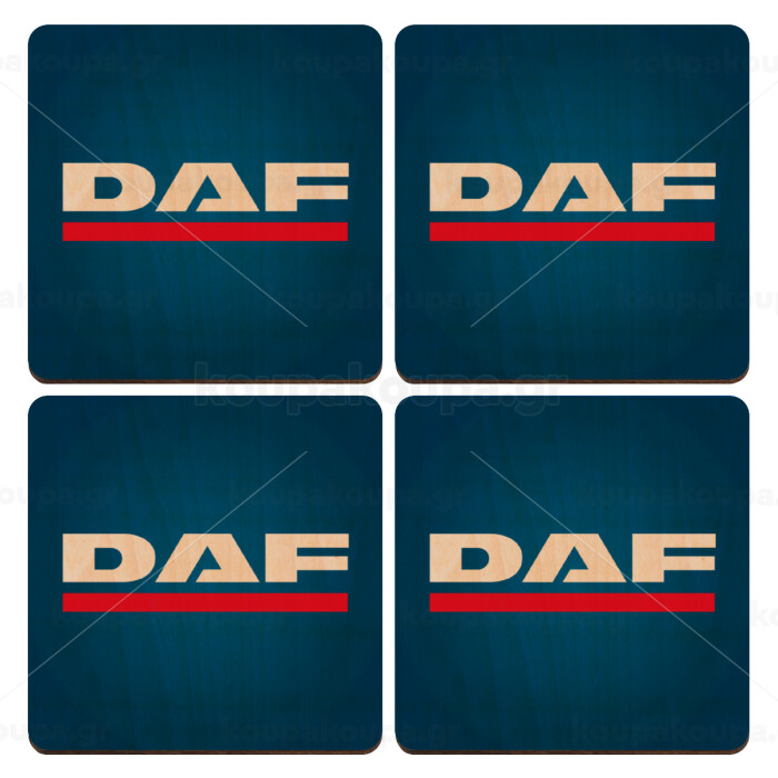 DAF, ΣΕΤ x4 Σουβέρ ξύλινα τετράγωνα plywood (9cm)