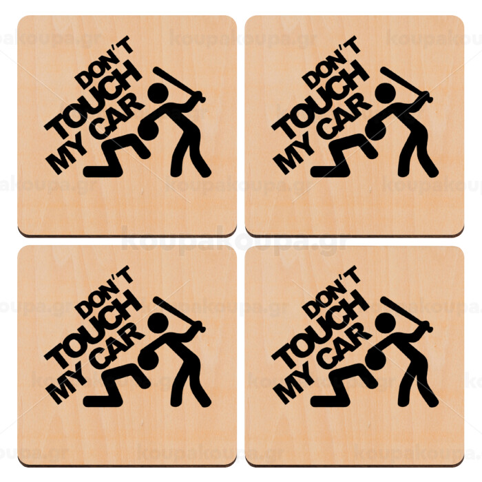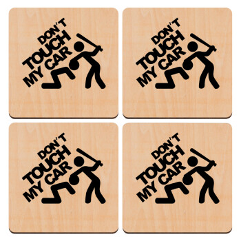 Don't touch my car, ΣΕΤ x4 Σουβέρ ξύλινα τετράγωνα plywood (9cm)