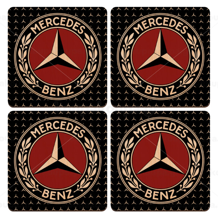 Mercedes vintage, ΣΕΤ x4 Σουβέρ ξύλινα τετράγωνα plywood (9cm)
