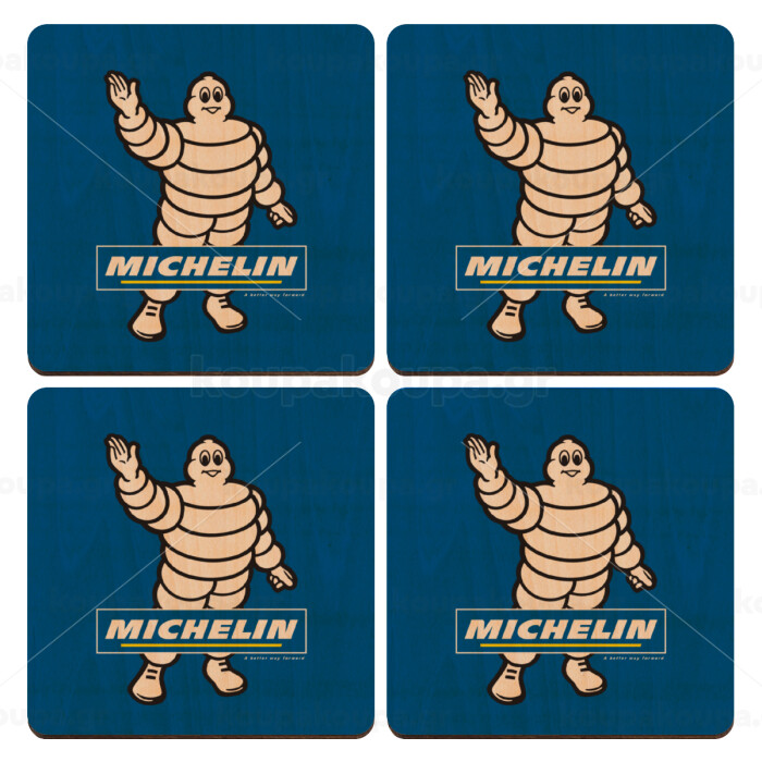 Michelin, ΣΕΤ x4 Σουβέρ ξύλινα τετράγωνα plywood (9cm)