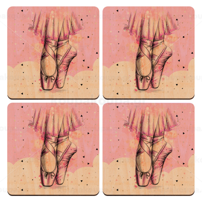 Ballerina shoes, ΣΕΤ x4 Σουβέρ ξύλινα τετράγωνα plywood (9cm)