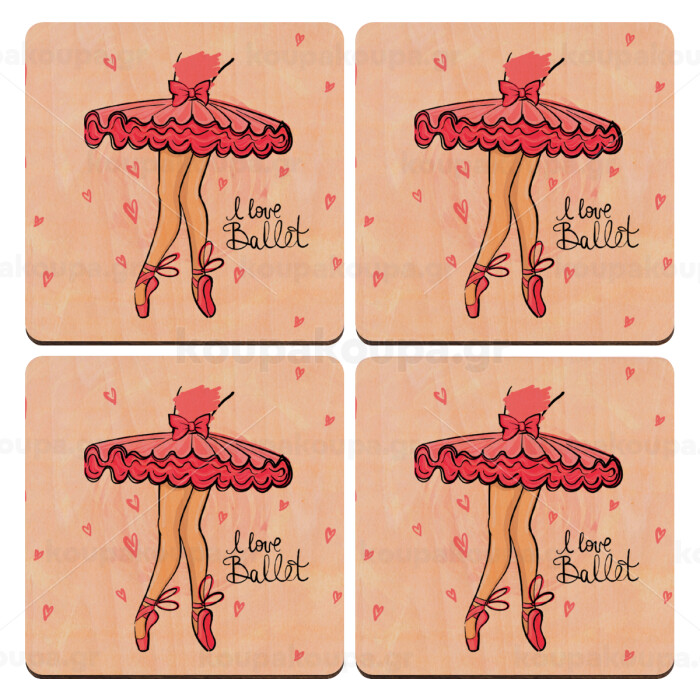 I Love Ballet, ΣΕΤ x4 Σουβέρ ξύλινα τετράγωνα plywood (9cm)