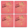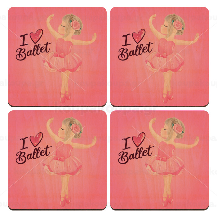 I Love Ballet, ΣΕΤ x4 Σουβέρ ξύλινα τετράγωνα plywood (9cm)