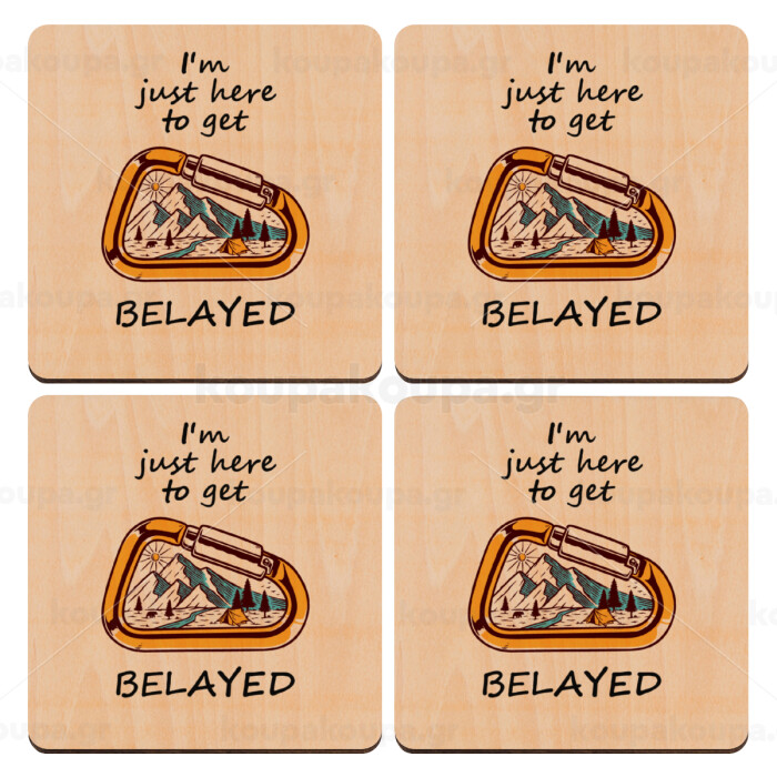 I'm just here to get Belayed, ΣΕΤ x4 Σουβέρ ξύλινα τετράγωνα plywood (9cm)
