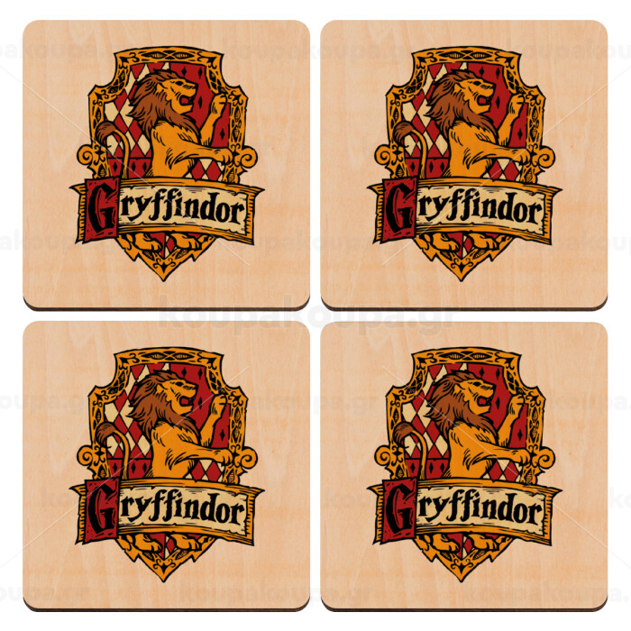 Gryffindor, Harry potter, ΣΕΤ x4 Σουβέρ ξύλινα τετράγωνα plywood (9cm)