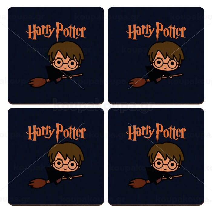 Harry potter kid, ΣΕΤ x4 Σουβέρ ξύλινα τετράγωνα plywood (9cm)