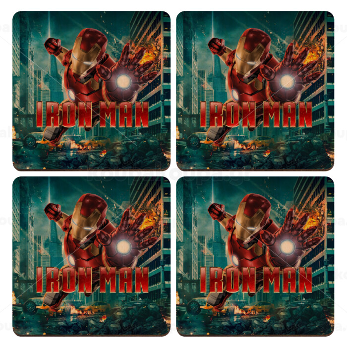 Ironman, ΣΕΤ x4 Σουβέρ ξύλινα τετράγωνα plywood (9cm)