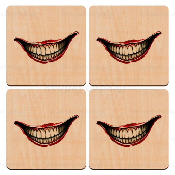 Joker smile, ΣΕΤ x4 Σουβέρ ξύλινα τετράγωνα plywood (9cm)