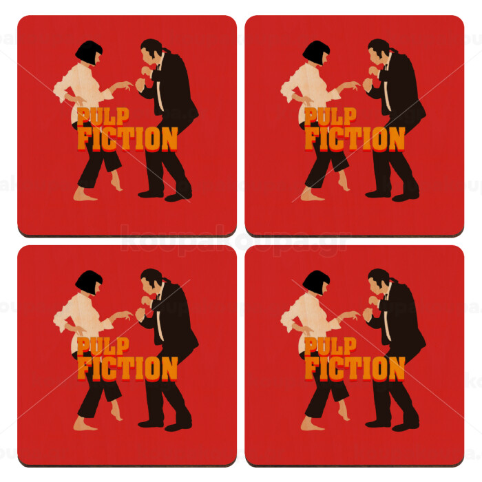 Pulp Fiction dancing, ΣΕΤ x4 Σουβέρ ξύλινα τετράγωνα plywood (9cm)
