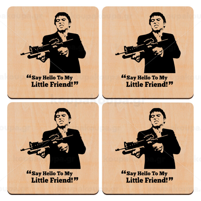 Scarface, ΣΕΤ x4 Σουβέρ ξύλινα τετράγωνα plywood (9cm)